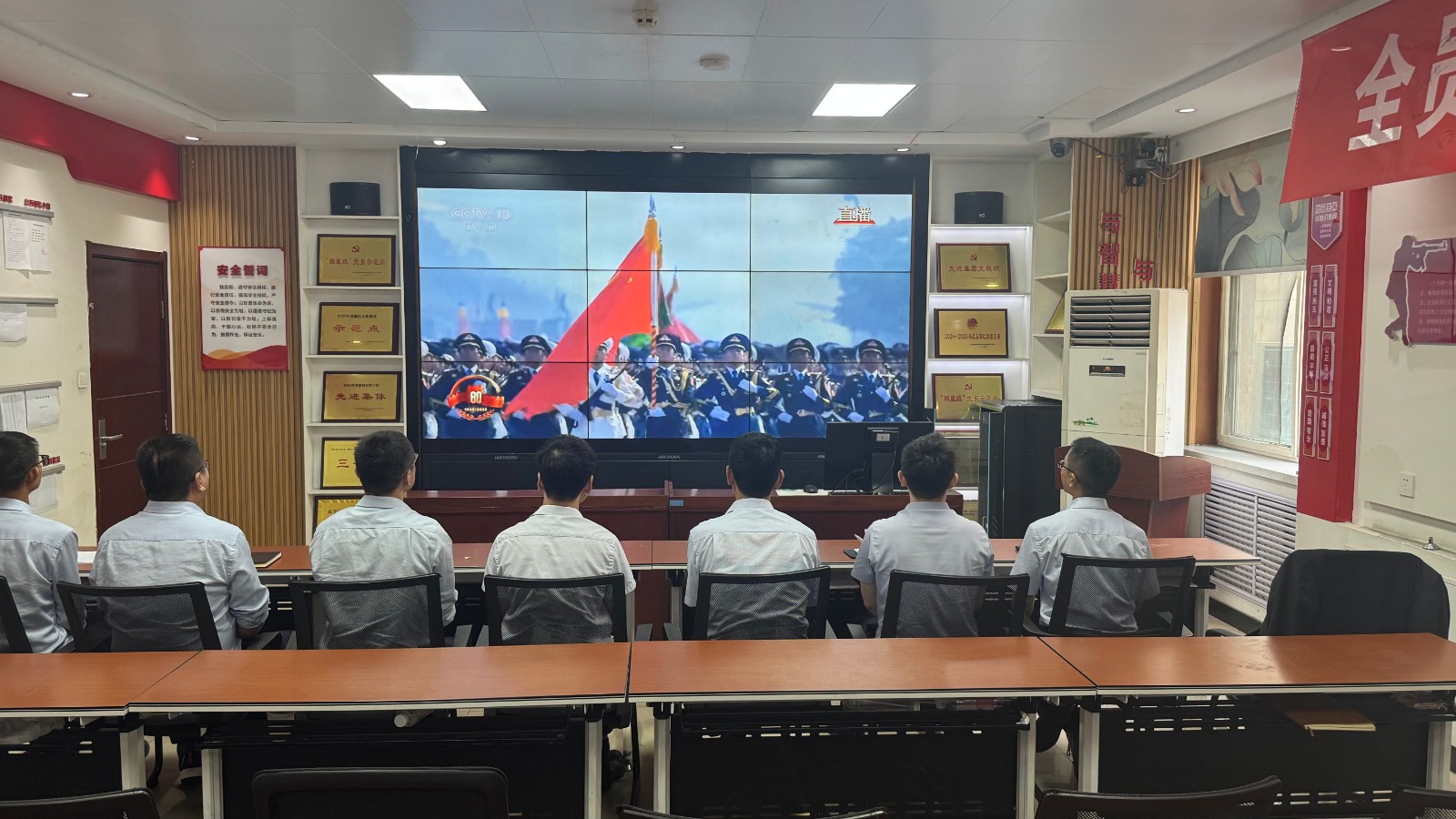 歷史燭照未來,精神永續(xù)傳承。為深切緬懷在抗日戰(zhàn)爭中英勇獻(xiàn)身的革命先烈,大力弘揚偉大的抗戰(zhàn)精神,引導(dǎo)全體黨員、職工銘記光輝歷史、堅定理想信念、強化責(zé)任擔(dān)當(dāng),9月3日,機運工區(qū)黨支部組織開展了“銘記歷史偉業(yè),傳承紅色基因”主題黨日活動,組織全體黨員集中觀看紀(jì)念中國人民抗日戰(zhàn)爭暨世界反法西斯戰(zhàn)爭勝利80周年閱兵儀式現(xiàn)場直播。上午九時整,機運工區(qū)全體黨懷著無比崇敬與激動的心情,目光齊聚屏幕。伴隨著激昂雄壯的國歌奏響,鮮艷的五星紅旗在天安門廣場冉冉升起,大家心潮澎湃,肅然起敬。隨后,規(guī)模宏大、氣勢磅礴的閱兵式正式開始。屏幕上,一個個整齊劃一、威武雄壯的徒步方隊,邁著鏗鏘有力、撼人心魄的步伐走過檢閱臺,堅毅的眼神、挺拔的身姿,充分展現(xiàn)了新時代軍人聽黨指揮的忠誠品格和能打勝仗的過硬本領(lǐng);一列列代表著國家科技實力與國防現(xiàn)代化建設(shè)最新成果的裝備方隊,鐵流滾滾,氣勢如虹,尖端武器依次亮相,彰顯了捍衛(wèi)國家主權(quán)、安全、發(fā)展利益的堅定決心與強大能力;雄鷹呼嘯,劃破長空,戰(zhàn)機編隊以精準(zhǔn)的隊形和磅礴的氣勢接受檢閱,描繪出壯美的藍(lán)天畫卷,宣示著捍衛(wèi)國家領(lǐng)空安全的鋼鐵意志。整個閱兵過程,秩序井然、威武雄壯、氣勢恢宏,生動詮釋了人民軍隊“聽黨指揮、能打勝仗、作風(fēng)優(yōu)良”的強軍目標(biāo),全方位展示了在黨的堅強領(lǐng)導(dǎo)下,國家日益強大的綜合國力和維護(hù)世界和平的堅定信念。屏幕前,黨員們?nèi)褙炞?,無不被這震撼人心的場面所感染,民族自豪感與榮譽感油然而生,現(xiàn)場不時響起由衷的贊嘆和熱烈的掌聲。通過本次“銘記歷史偉業(yè),傳承紅色基因”主題黨日活動,機運工區(qū)黨支部全體黨員經(jīng)歷了一次深刻的精神淬煉與思想升華。大家的歷史使命感、民族自豪感、崗位責(zé)任感得到顯著增強,紛紛表示以更加飽滿昂揚的精神狀態(tài)、更加求真務(wù)實的工作作風(fēng)、更加開拓創(chuàng)新的進(jìn)取意識,恪盡職守,銳意進(jìn)取,全力以赴保障原煤運輸安全高效,為工區(qū)及公司的持續(xù)高質(zhì)量發(fā)展貢獻(xiàn)全部力量!
